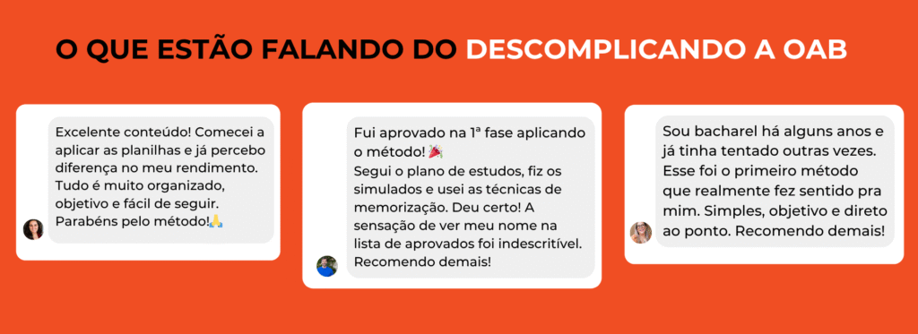 É isso mesmo! Se, por qualquer motivo, você não ficar satisfeito com os documentos disponibilizados, pode solicitar seu dinheiro de volta. O Descomplicando a OAB possui garantia de sete dias de forma incondicional e sem burocracias.